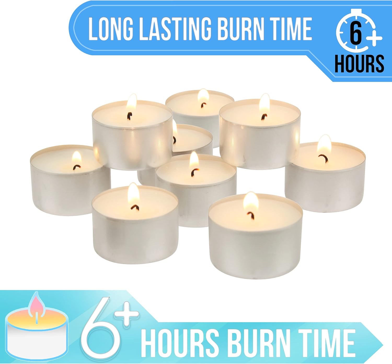 100 Unscented Tea Lights: Great for sensitive noses, weddings, or everyday use